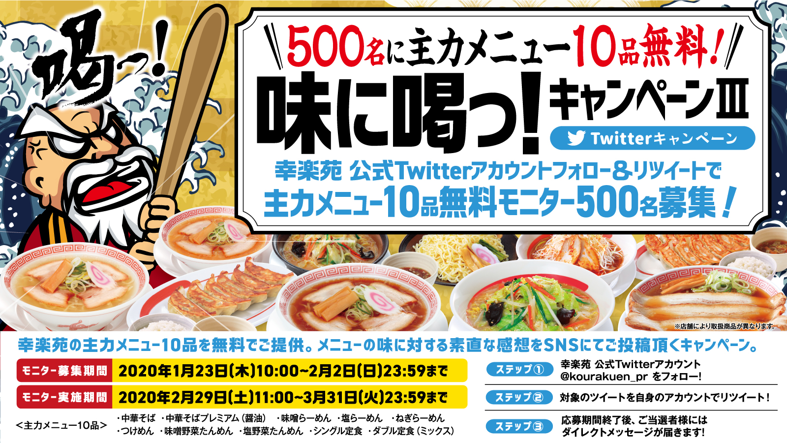 幸楽苑 お客様感謝祭 開催記念キャンペーンをTwitterで開催