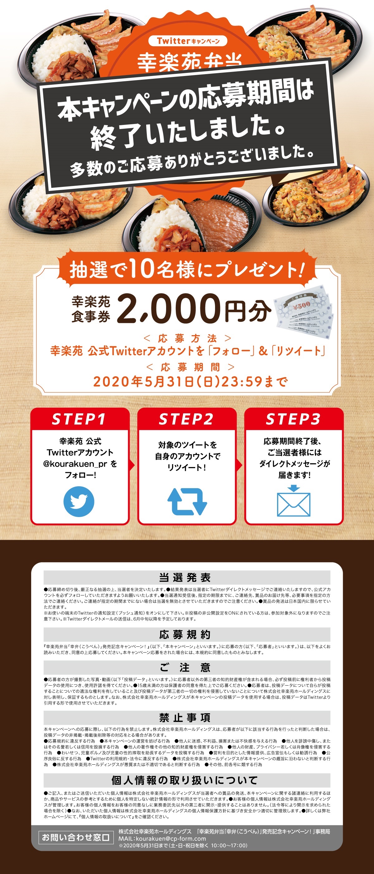 幸楽苑弁当「幸弁(こうべん)」 発売記念Twitterキャンペーン開催!!