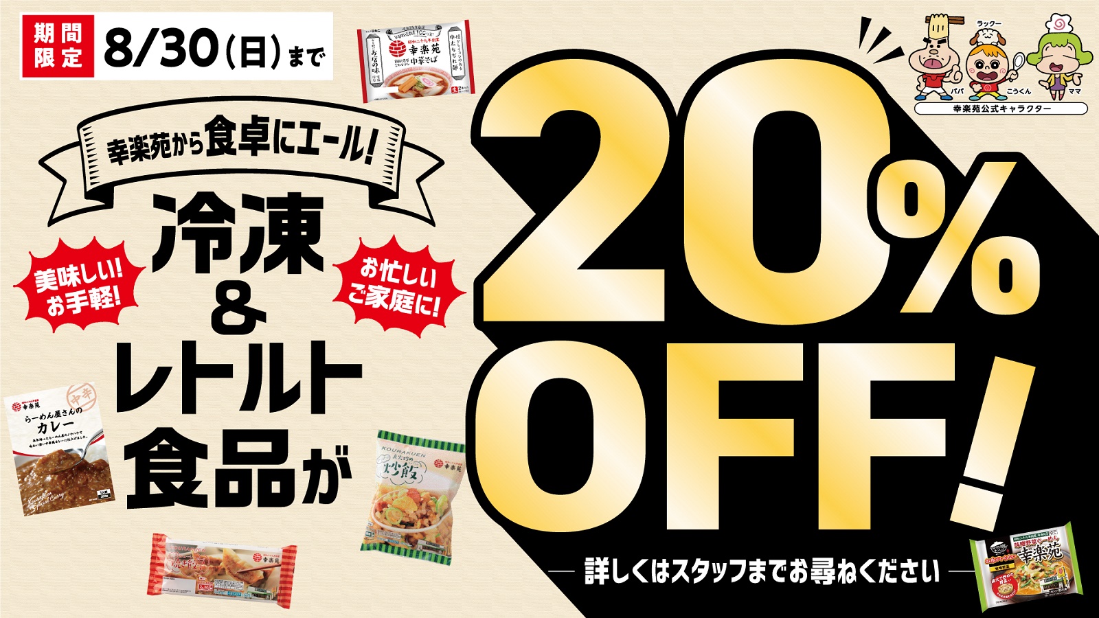 幸楽苑から食卓にエール!冷凍&レトルト食品が8月30日(日)までの期間限定で20%OFFに!!