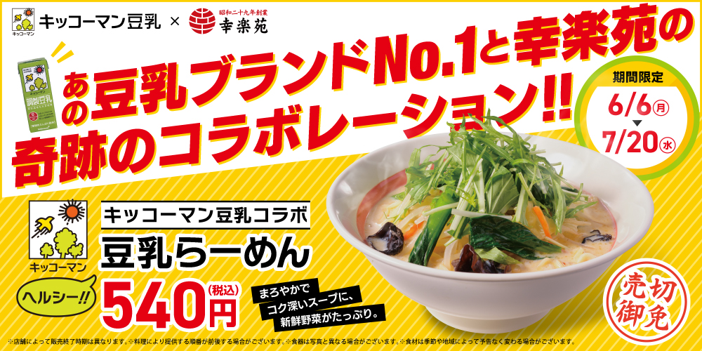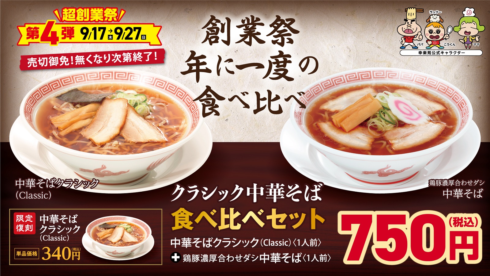 創業67周年を迎える幸楽苑「創業祭」第2弾として、9月16日(木)から提供開始
