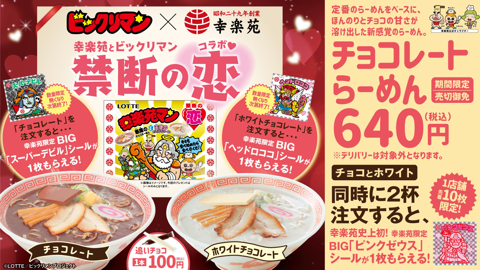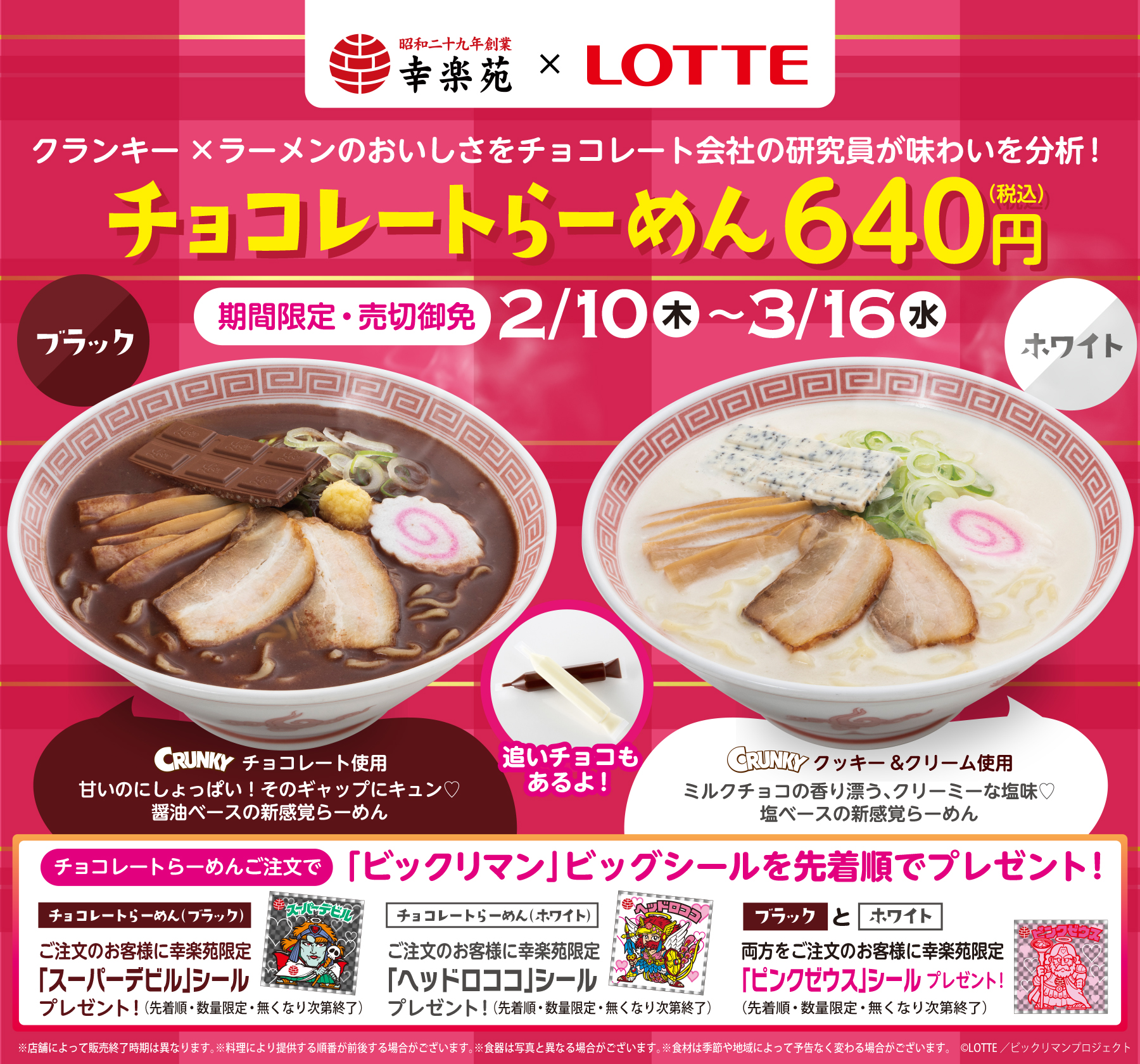 幸楽苑×ロッテ チョコレート研究員お墨付き! 幸楽苑の「チョコレートらーめん ブラック・ホワイト」 ビックリマンコラボで今年も期間限定販売