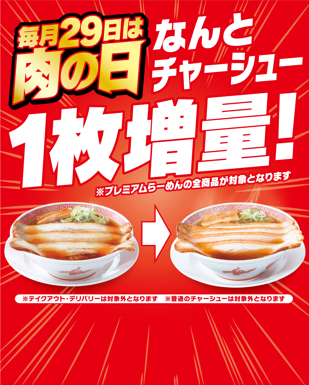 毎月29日は肉の日 ーなんとチャーシュー1枚増量!ー