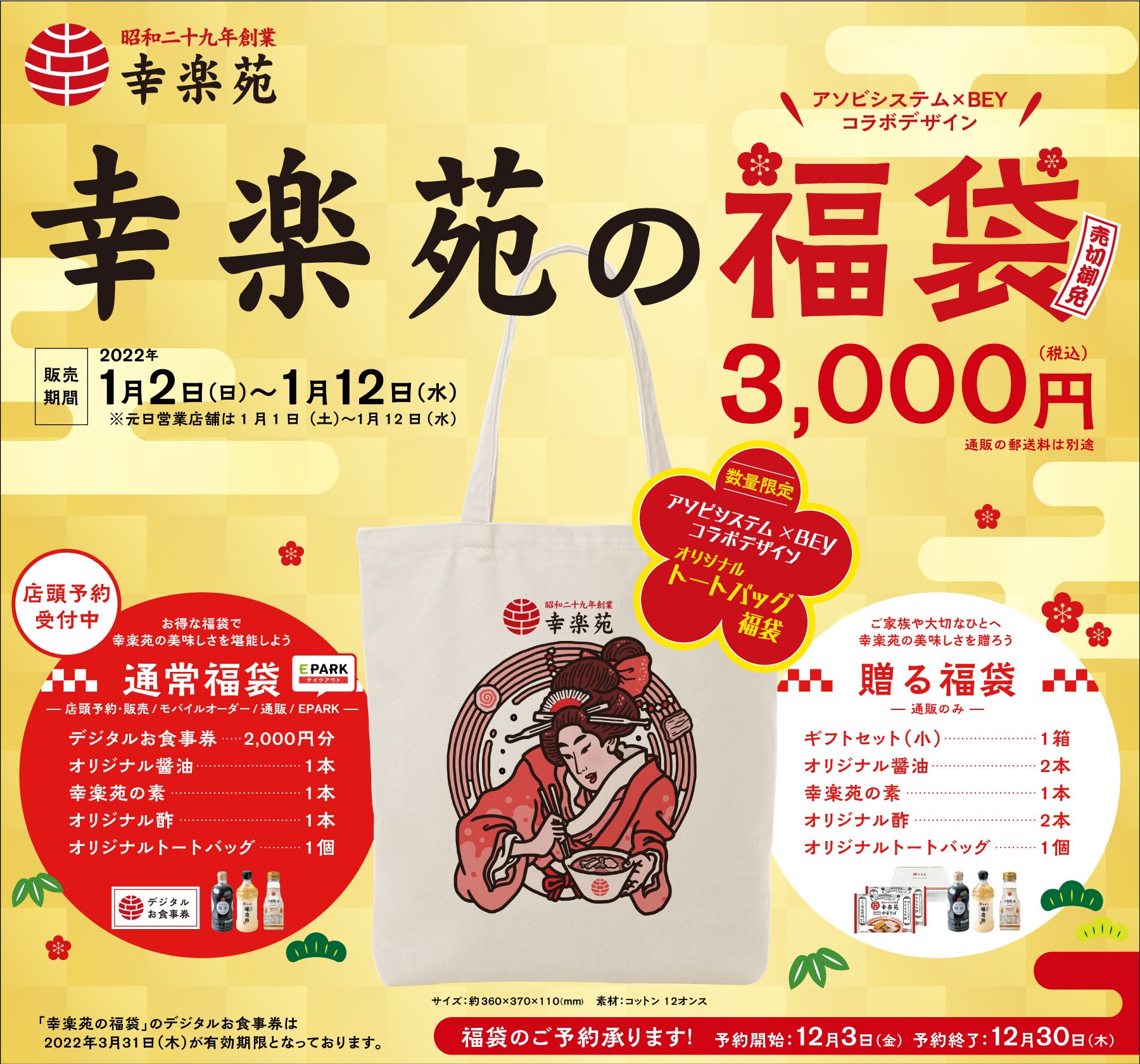 買ってHAPPY!贈ってHAPPY!2022年の「幸楽苑の福袋」2021年12月3日(金)~期間限定で予約開始!