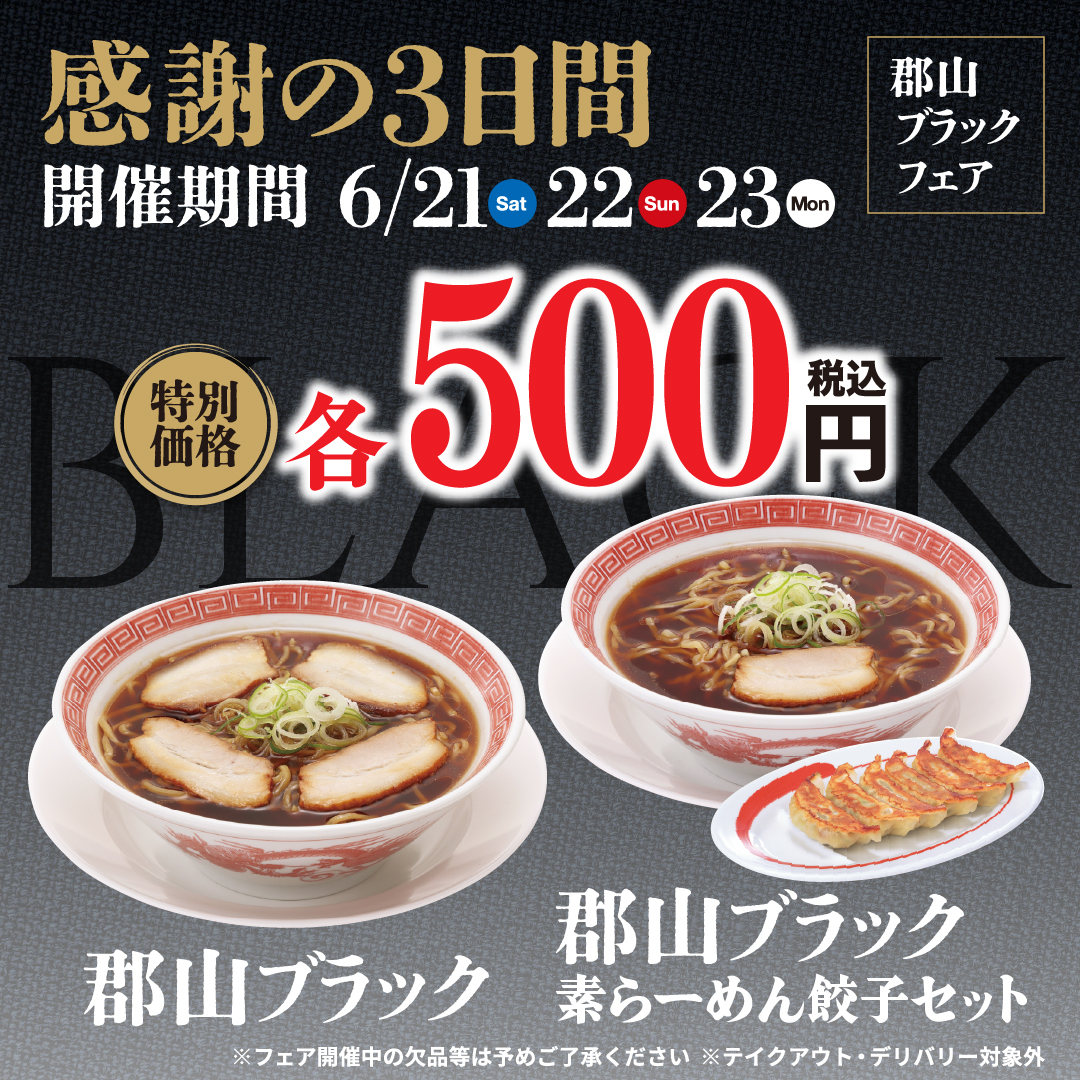 6月21日から感謝の3日間!!「郡山ブラック」をワンコインで再販売!
