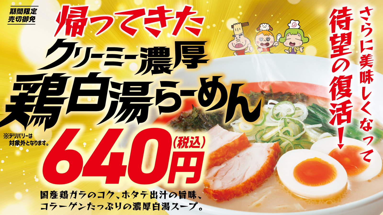 クリーミー濃厚 鶏白湯らーめん 登場!!