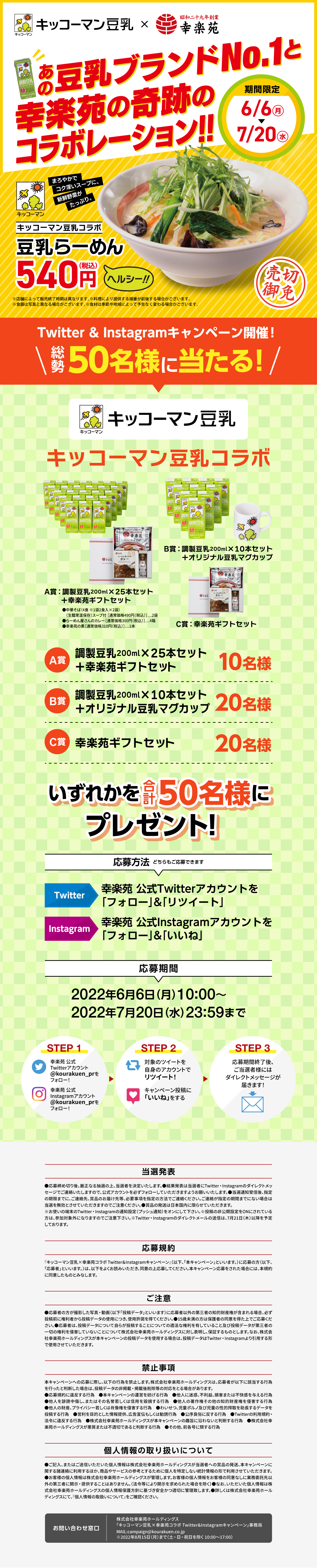 豆乳が生み出すまろやかな“コク”と“旨味” キッコーマン豆乳×幸楽苑「豆乳らーめん」が期間限定で登場!