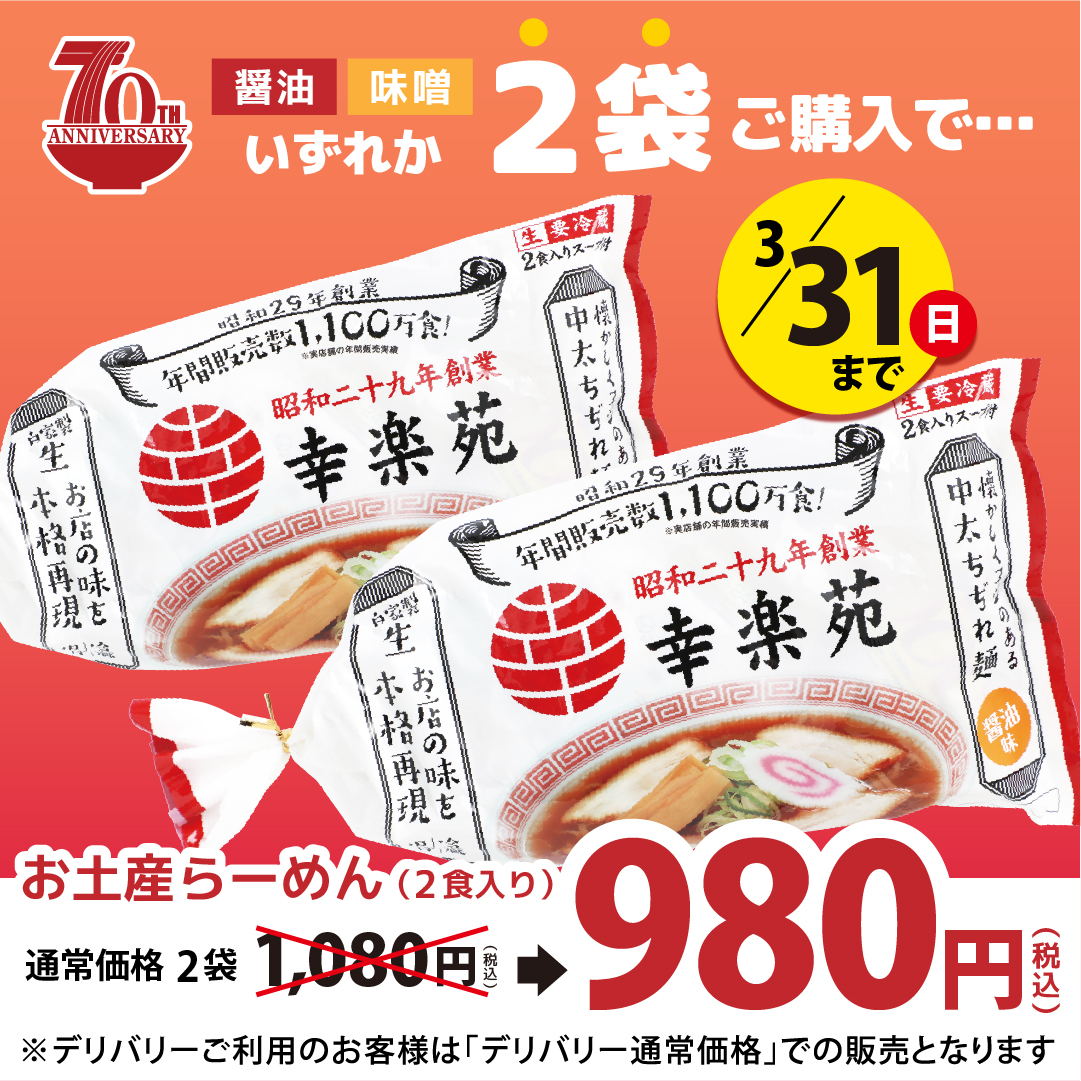 期間限定 お土産らーめん2食入り(醤油・味噌)2袋ご購入で特別価格販売!!