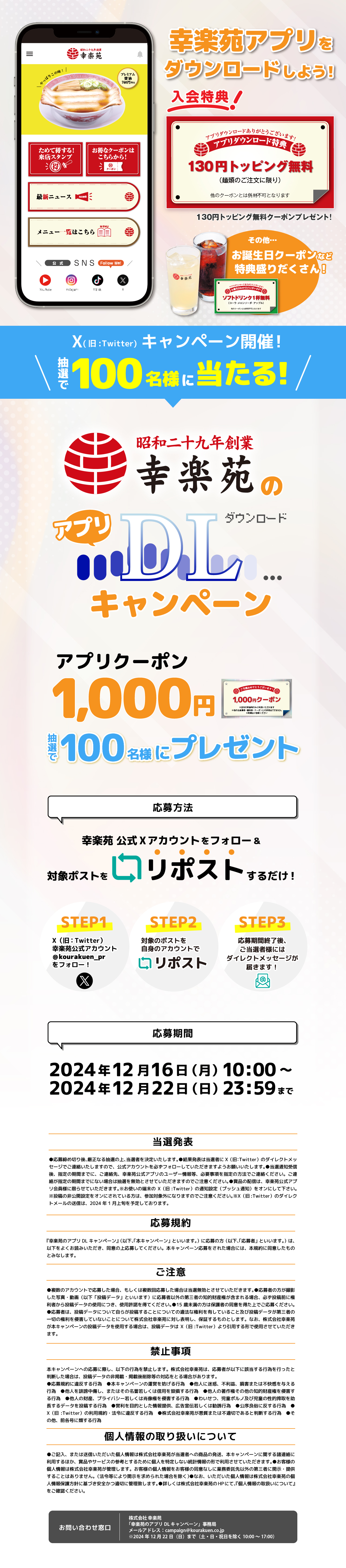 100名様にアプリクーポン1,000円分が当たるXキャンペーン 2024年12月16日(月)~12月22日(日)まで開催!!