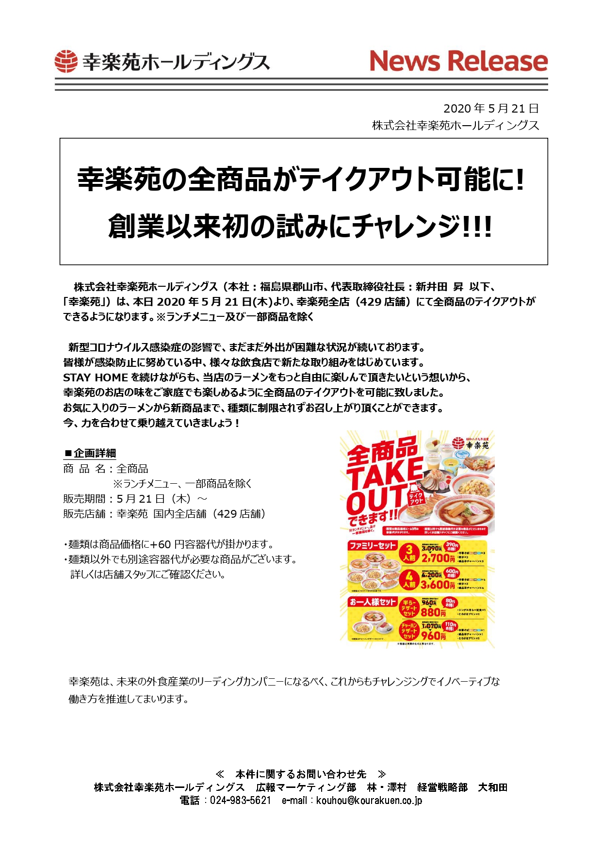 幸楽苑の全商品がテイクアウト可能に! 創業以来初の試みにチャレンジ!!!