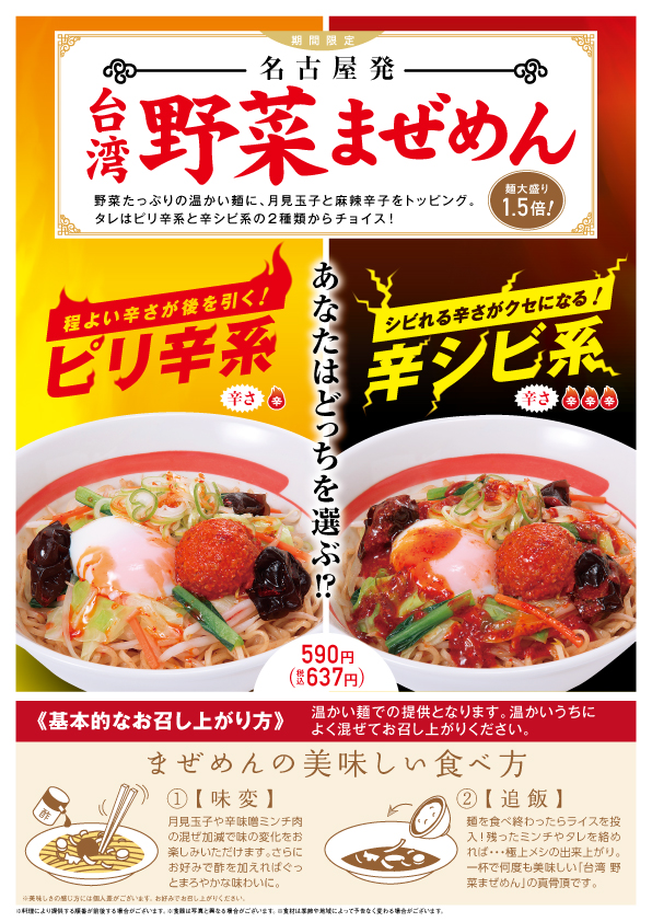 期間限定メニュー「台湾野菜まぜめん」登場!