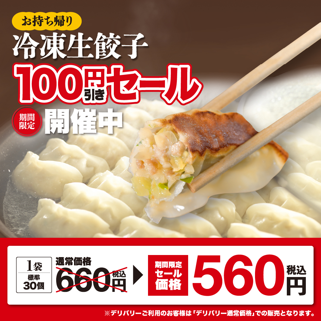1月15日(木)~3月1日(日)まで!お持ち帰り「冷凍生餃子」 特別価格560円(税込)にて販売!