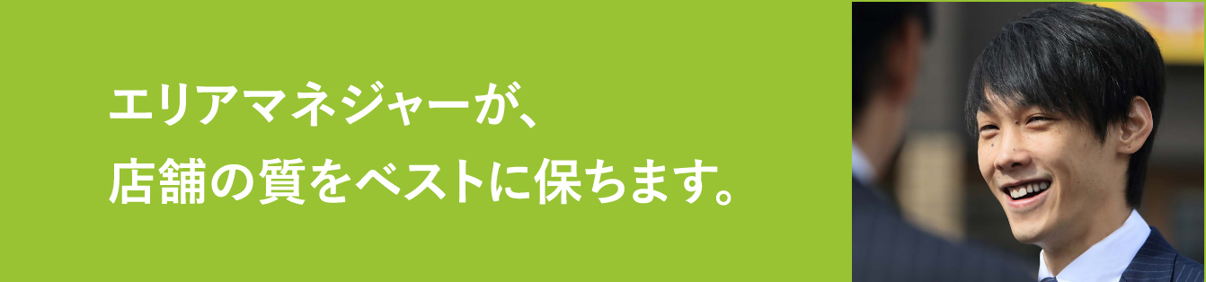 「食の安全」は、商品はもちろんのこと、清掃と衛生管理によって守られるものです。お店においては、安心感と快適さが基本。マニュアルに沿ってこまめに清掃・点検を行います。卓上・椅子の清掃のほか、例えばトイレも定期的に清掃。どの店舗も、地域No.1のクリンリネスを目指します。